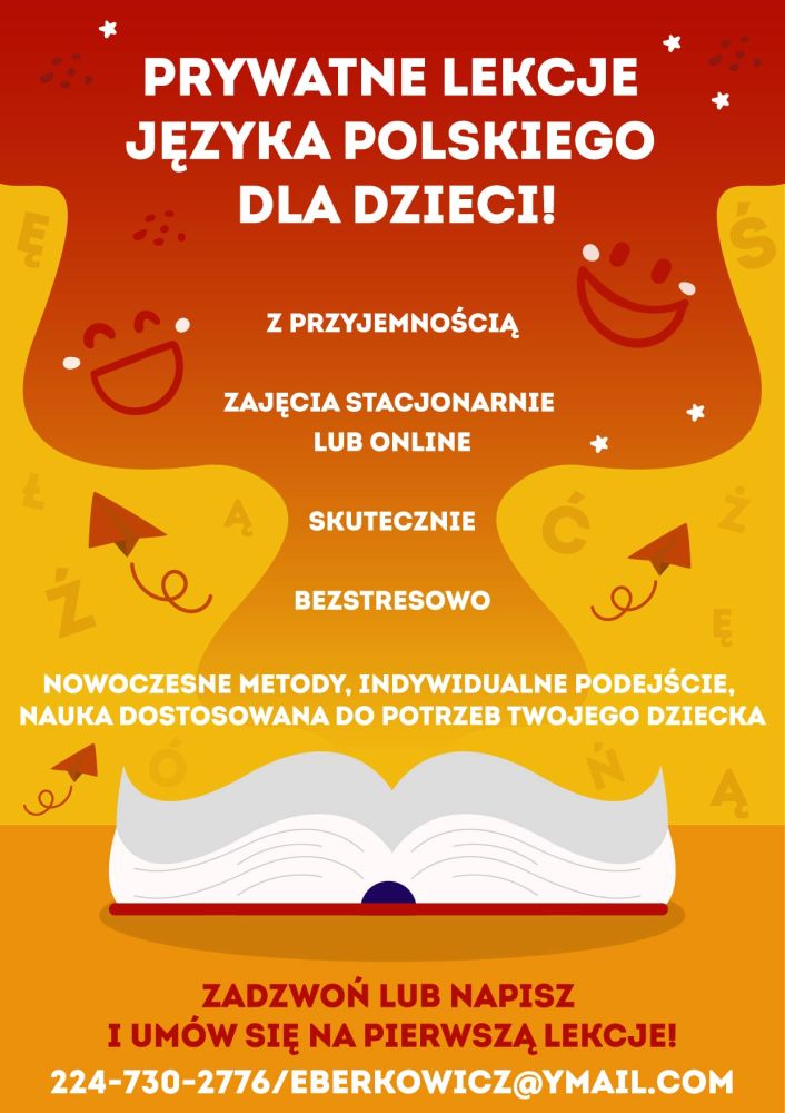 Prywante lekcje języka polskiego dla dzieci! Z przyjemnością, zajęcia stacjonarne lub