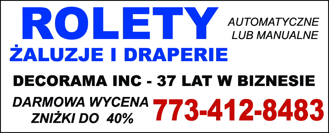 ROLETY ŻALUZJE I DRAPERIE automatyczne lub manualne. DECORAMA INC - 37 lat w biznesie.